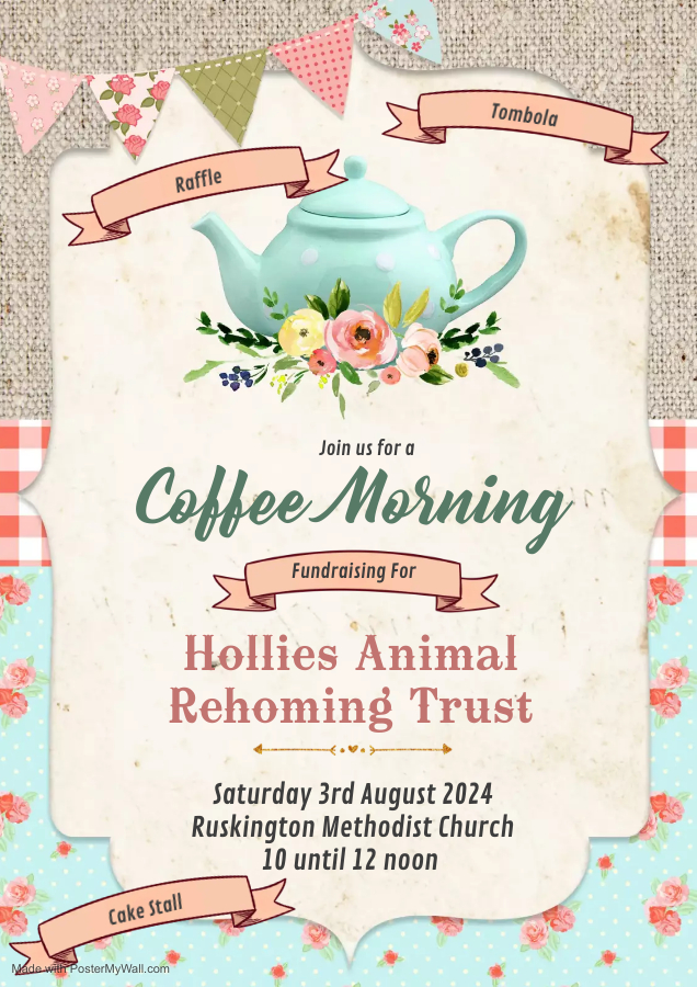 Ruskington Methodist Church have very kindly picked us as a Charity to fundraise for during their coffee morning on: